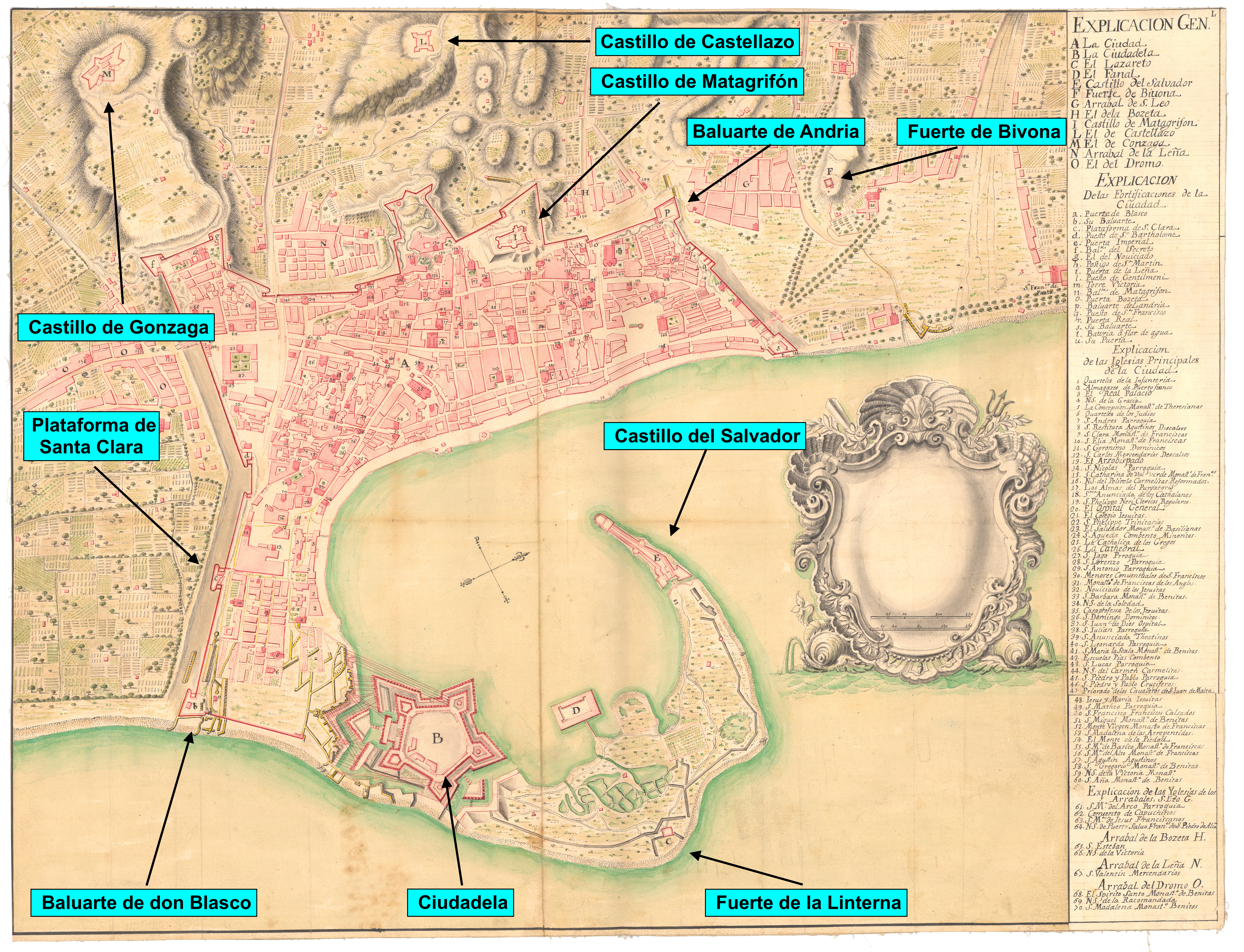 Guzmán-Dávalos y Spínola, Jaime de, marqués de la Mina. Planos de la guerra de Cerdeña y Sicilia. Biblioteca Nacional de España. MSS 6408. 80 páginas, 17,2 MB.