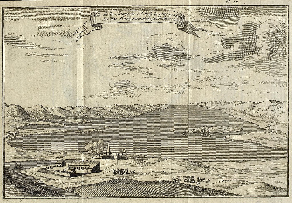Durante la primera mitad del siglo XVIII las islas Malvinas fueron visitadas por marineros holandeses, británicos y franceses en sus expediciones hacia el estrecho de Magallanes, pero nadie las ocupó ni fundó ningún puesto o establecimiento. El rey Felipe V autorizó que tres barcos franceses pudieran comerciar con los puertos del virreinato del Perú de la costa del Pacífico; uno de los capitanes, un tal de San Jusan, recaló en las Malvinas en 1722 y las bautizó como isles Malouines en honor a Saint-Malo, que era el lugar donde vivían los armadores de los barcos franceses. A pesar de que los españoles las conocían y tenían cartografiadas como islas de los Leones, el nombre hizo fortuna en su forma deformada como islas Malvinas.