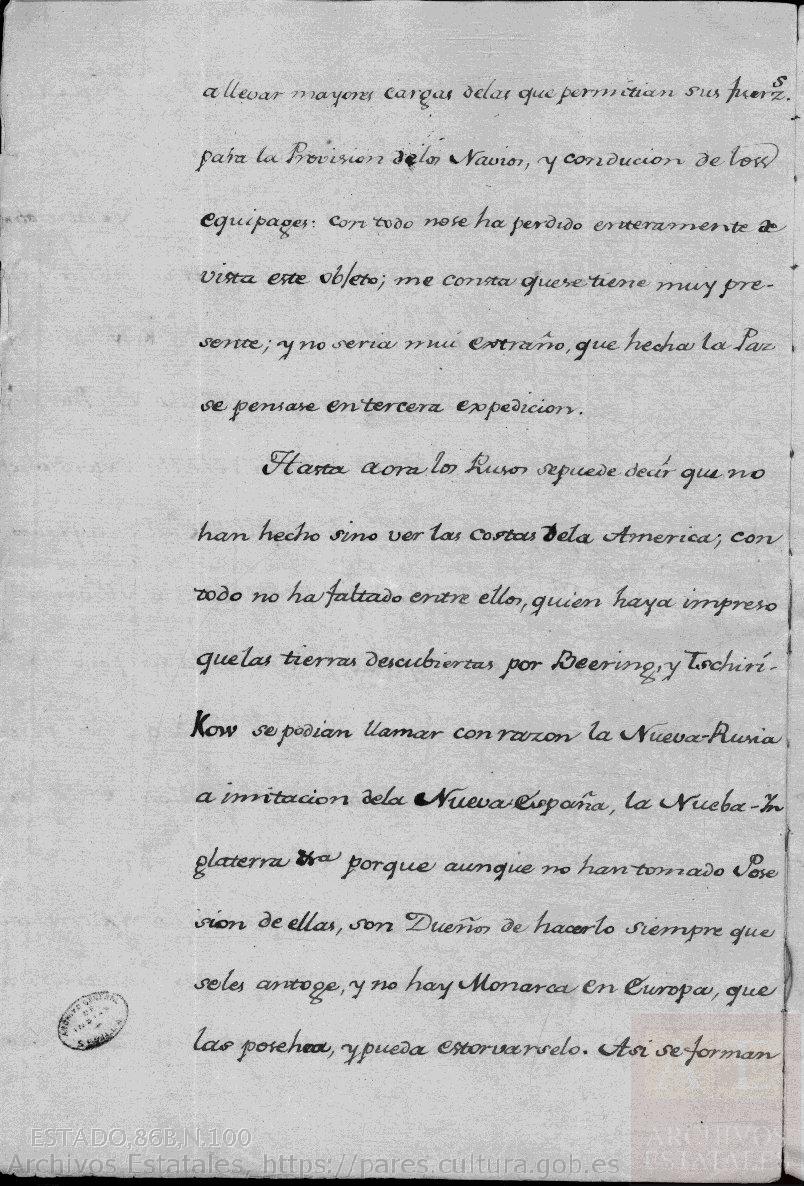Archivo General de Indias (AGI), ESTADO, 86B, N.100, documento 1.