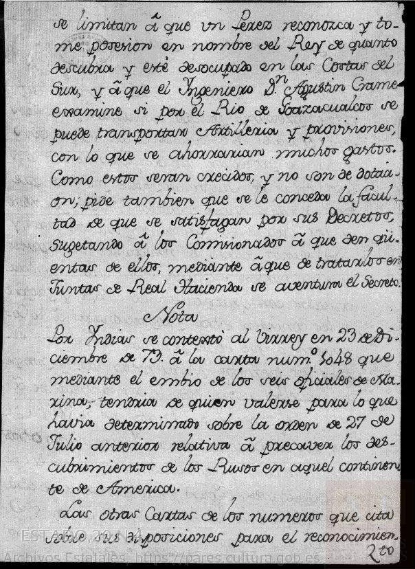 Acceso al fichero PDF Copia de varias cartas del virrey Bucareli y la respuesta a una de ellas, de 23 de diciembre de 1774..