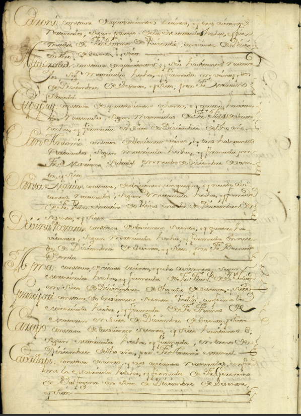 [02] ”Estado de las Compañías de Infantería, Artillería y gastadores de dotación en la Provincia de Guayana en la Revista de Ynspección pasada por el Comandante General don Manuel Centurion el día 31 de diciembre de 1769.” ”Idem de 15 de marzo de 1770.” Biblioteca Virtual de Defensa, ref: AMN, Ms.0565/022.