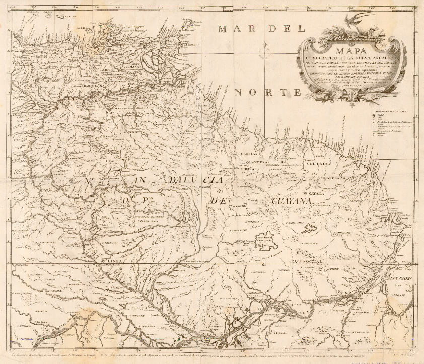 La provincia de la Guayana era un inmenso territorio de unos 450.000 km2 donde apenas vivían unos 22.000 habitantes[01], con muchas zonas aún inexploradas y desconocidas. Estaba limitado por los cursos de los ríos Orinoco, Negro y Amazonas, que lo englobaban en una gran bolsa que limitaba con el mar. La provincia perteneció al virreinato de Nueva Granada hasta 1777, año en que se incorporó a la recióen creada Capitanía General de Venezuela, poco después de la llegada del brigadeir Crame a la provincia. En la frontera sur los portugueses lograron penetrar e incorporar bastante territorio al Brasil; los británicos, holandeses y franceses se asentaron en la costa noreste, penetrando en el interior, que con el tiempo dio lugar a los actuales países de Guyana y Surinam y a la Guayana francesa.