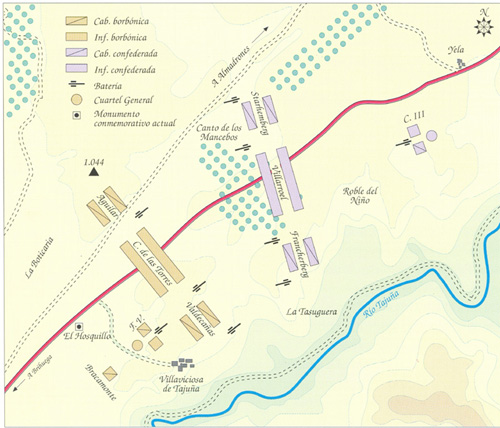 Despliegue de ambos ejércitos en la batalla de Villaviciosa.