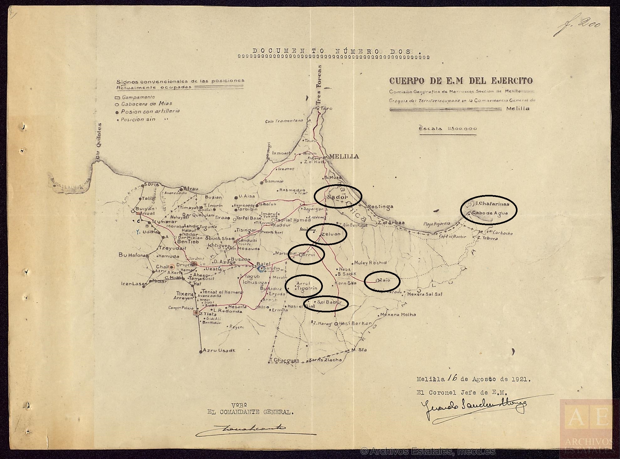 Posiciones de la circunscripción de Nador.