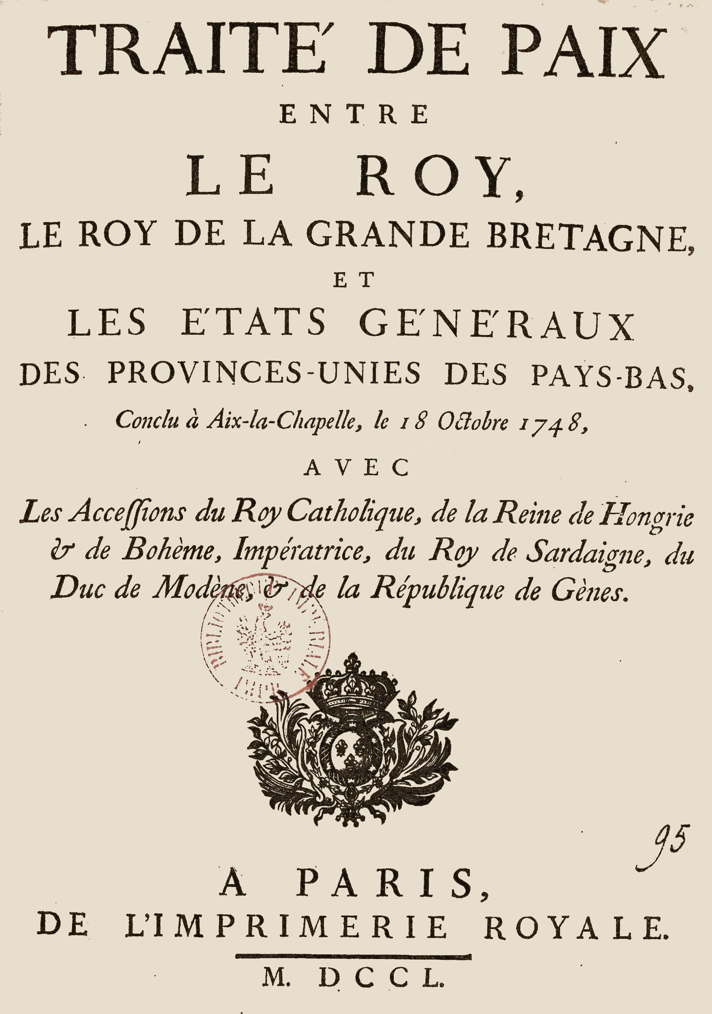 El tratado de paz firmado en Aquisgrán el 18 de octubre de 1748 puso término a varias guerras: