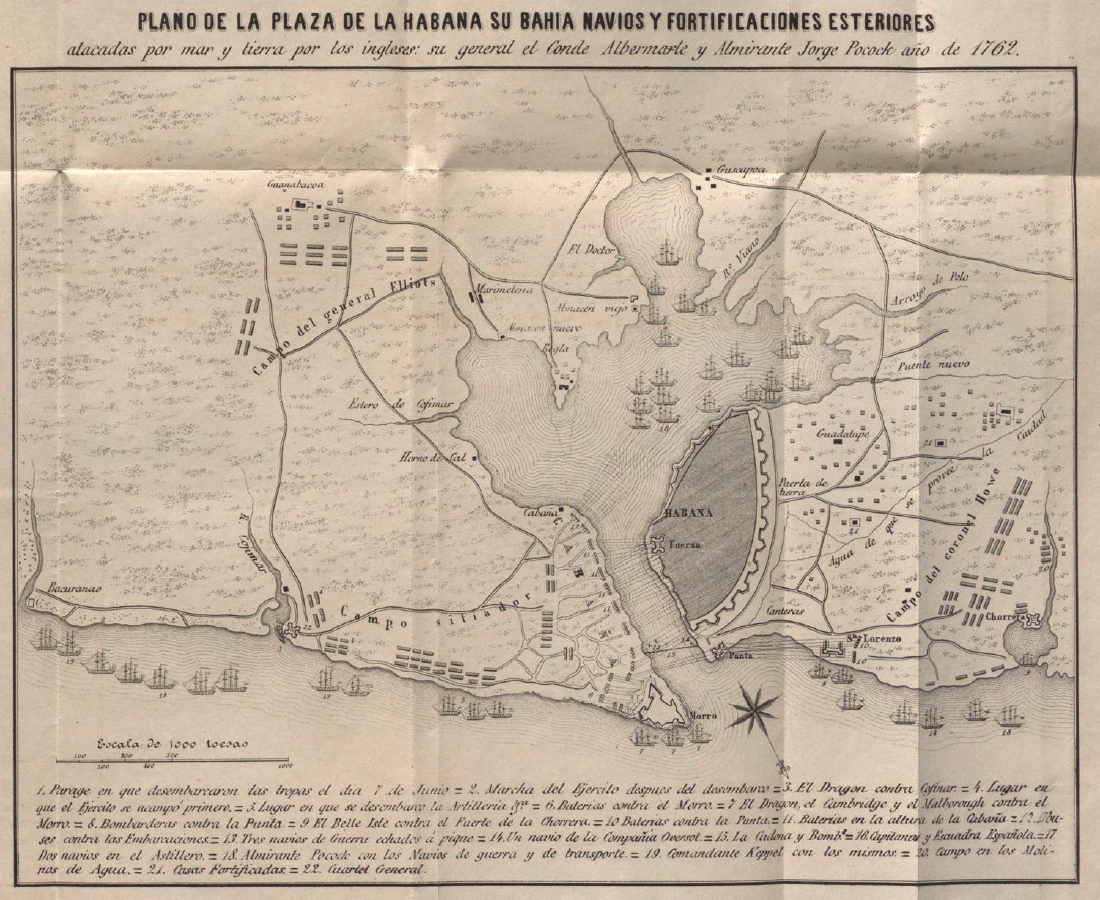 Tomada la fortaleza del Morro, lord Albemarle no esperó a que finalizaran las baterías que estaba emplazando en el cerro de la Cabaña sobre la bahía, sino que el 1 de agosto ordenó comenzar de inmediato el bombardeo de la ciudad desde el castillo del Morro. Simultáneamente, sus tropas proseguían con los trabajos para establecer catorce baterías con 77 piezas contra la Habana: diez baterías con 45 cañones de a 24 y 36 pulgadas y cuatro con 32 obuses y morteros.
