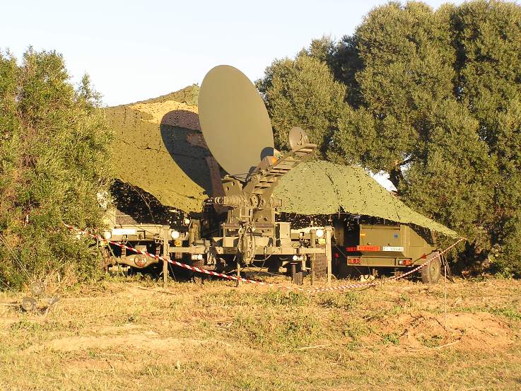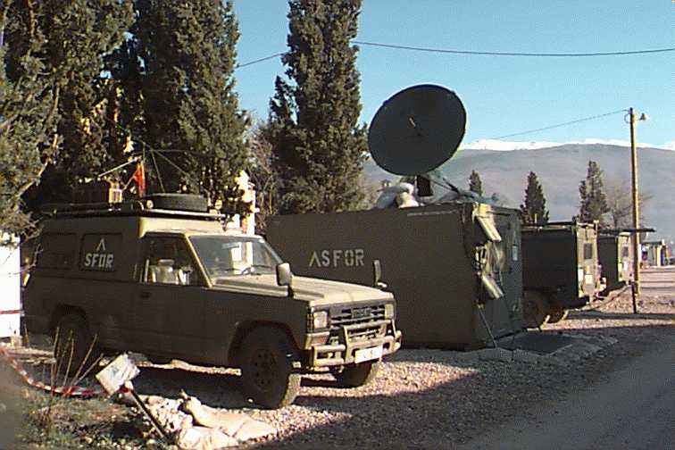 Terminal CICSAT desplegado en Medugorge en 1992. Colección fotográfica del regimiento. El despliegue mencionado de unidades españolas en el Kurdistán en 1991, así como de unidades mecanizadas, paracaidistas y legionarias en Cerdeña y Sicilia en el marco de los ejercicios anuales DRAGON HAMMER de la OTAN realizados a principios de la década de los noventa, pusieron de manifiesto la dependencia que tenía el regimiento en los enlaces HF. Ello supuso la dotación de los primeros sondadores ionosféricos, entregados a la unidad en 1991, y de los primeros cifradores HF certificados por la alianza. Asimismo, se realizaron enlaces satélite entre la península y la unidad desplegada en Irak mediante terminales satélite Inmarsat. Fruto de estas experiencias, coincidentes en el tiempo con el nacimiento del programa HISPASAT y su carga gubernamental, nacieron los primeros estudios de necesidades de terminales satélite tácticos para el regimiento. Estas fueron las primeras experiencias en satisfacer las necesidades de enlace a unidades expedicionarias desde mediados de la década de los sesenta, y fueron el primer paso para actualizar y modernizar los procedimientos de planeamiento y ejecución de los apoyos de Transmisiones, convirtiéndose en un proceso imparable que ha llegado hasta nuestros días. El posterior despliegue de unidades expedicionarias del regimiento en Bosnia-Hertzegovina en 1992 y 1993 contó con el empleo de los terminales satélite tácticos que atacaban la carga gubernamental de HISPASAT, adquiridos dentro del programa CICSAT (Capacidades Iniciales de Comunicaciones Satélite). Las responsabilidades de España dentro del Eurocuerpo, en cuyo cuartel general participa nuestro país junto con Francia, Alemania y Bélgica, obligaron a que el programa SECOMSAT (Segmento de Comunicaciones Satélite) desarrollara una serie de terminales satélite tácticos para utilizarlos en 1994 en el ejercicio conjunto combinado TRAMONTANA, con participación de las armadas y los ejércitos de tierra y aire de los países citados. La responsabilidad de planear, dirigir y conducir el ejercicio recayó en España, y el regimiento jugó un importante papel en su ejecución. Finalizado el ejercicio, los terminales satélite desarrollados para TRAMONTANA se asignaron al regimiento; algunos fueron desplegados inmediatamente en Bosnia-Hertzegovina, otros utilizados en los ejercicios conjunto-combinados en los que participó el regimiento en aquellos años [03]. Estos fueron los primeros de la serie de terminales satélite tácticos de los que se está dotando al regimiento a partir de entonces.